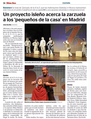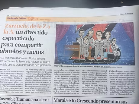 Entrevista en Diario de Mallorca a propósito del estreno de Zarzuela, de la Z a la A.